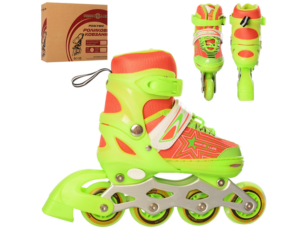 Описание:Ролики A 4138-S-GR раздв, шнур+бакля,ал.рама,колПУ64мм, 1св, зелен, в кор-ке,35-27-10см