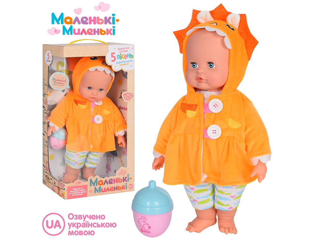 Описание:Пупс M 4709 I UA 38см,мягконаб,муз(укр),5песен,бутылоч-погремуш,бат-таб,в кор-ке,22,5-42-13см