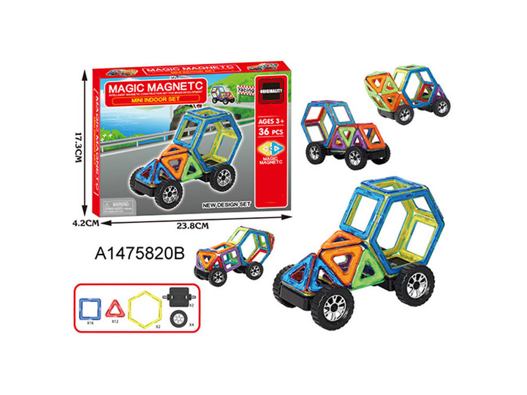 Конструктор FK678 магнитный, колеса, 36дет, в кор-ке, 24-17,5-4см