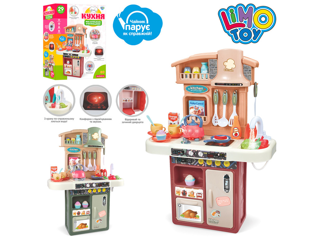 Описание:Кухня 16861AB 46-20-62см,плита,пар,мойка-льет.вода,зв,св,29предм,2цв,на бат,в кор,35-47-14см