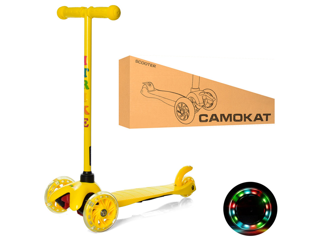 Описание:Самокат BB 3-013-5-Y MINI,стал+плас,3колПУ,2пер110мм-св,задн75мм,подн36-11см,руль62,5см,желт