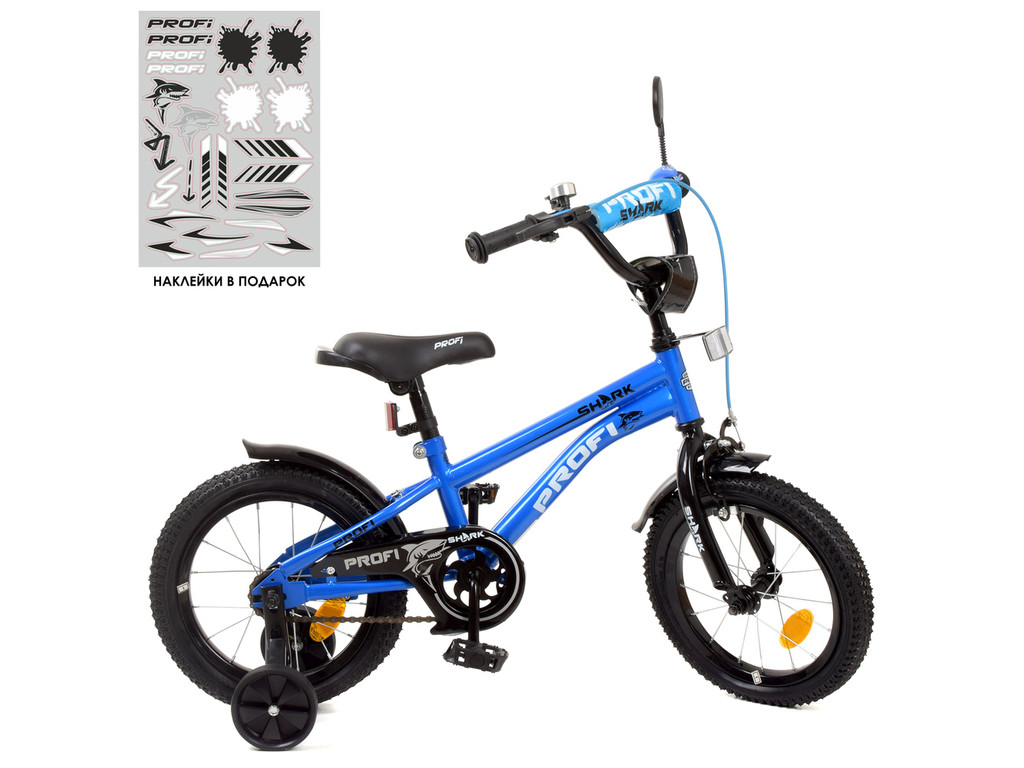 Описание:Велосипед детский PROF1 14д. Y14212 Shark,SKD45,сине-черный,звонок,фонарь,доп.кол
