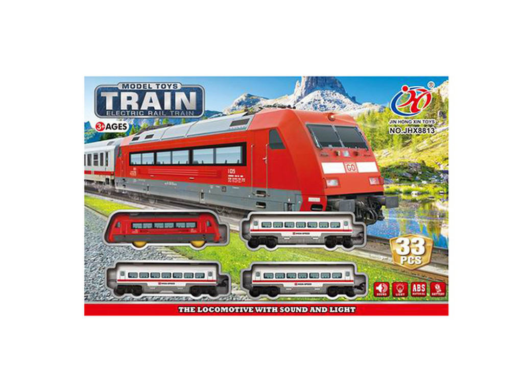 Описание:ЖД JHX8813 153см,локомотив18см, 3вагона,звук,свет,едет,33предм,на бат-ке ,в кор-ке, 59-39-7см