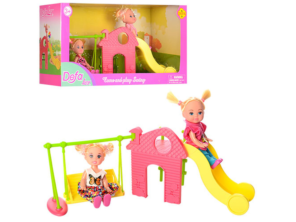 Кукла DEFA 8329 2шт, 10см, качелька, горка, 2 вида, в кор-ке, 31-16-11см