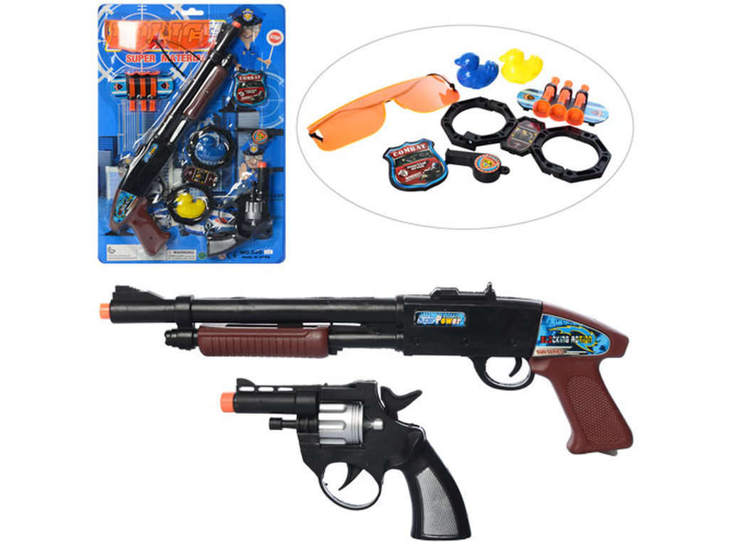 Описание:Набор полицейского 520-12 пистолет 2шт, присоски 3шт,наручники,очки,на листе, 28,5-42,5-3см